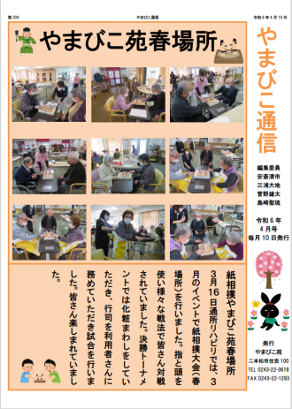 毎月発行の広報誌「やまびこ通信」はやまびこ苑の玄関に置いてあります。