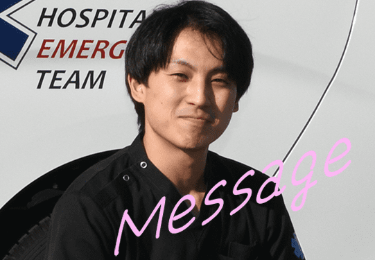 救急の現場、常に緊張感があり、思い通りいかないことの連続です。それでも、目の前の患者さんの命に真剣に向き合い続けることで、必ず自分自身の成長を実感できる仕事だと思います。迷ったときや苦しいときは、周りのスタッフが支えてくださる職場です。